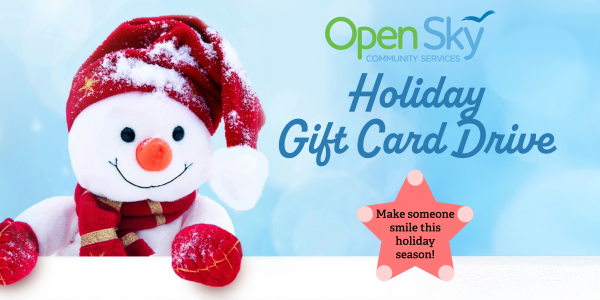 We are collecting $20 Walmart or Target gift cards to provide to our individuals served. You may drop off physical gift cards to our 4 Mann St office, or donate online: https://www.openskycs.org/ways-to-help/holiday-gifts.htmlIf you have questions about our Holiday Gift Drive, please contact events@openskycs.org